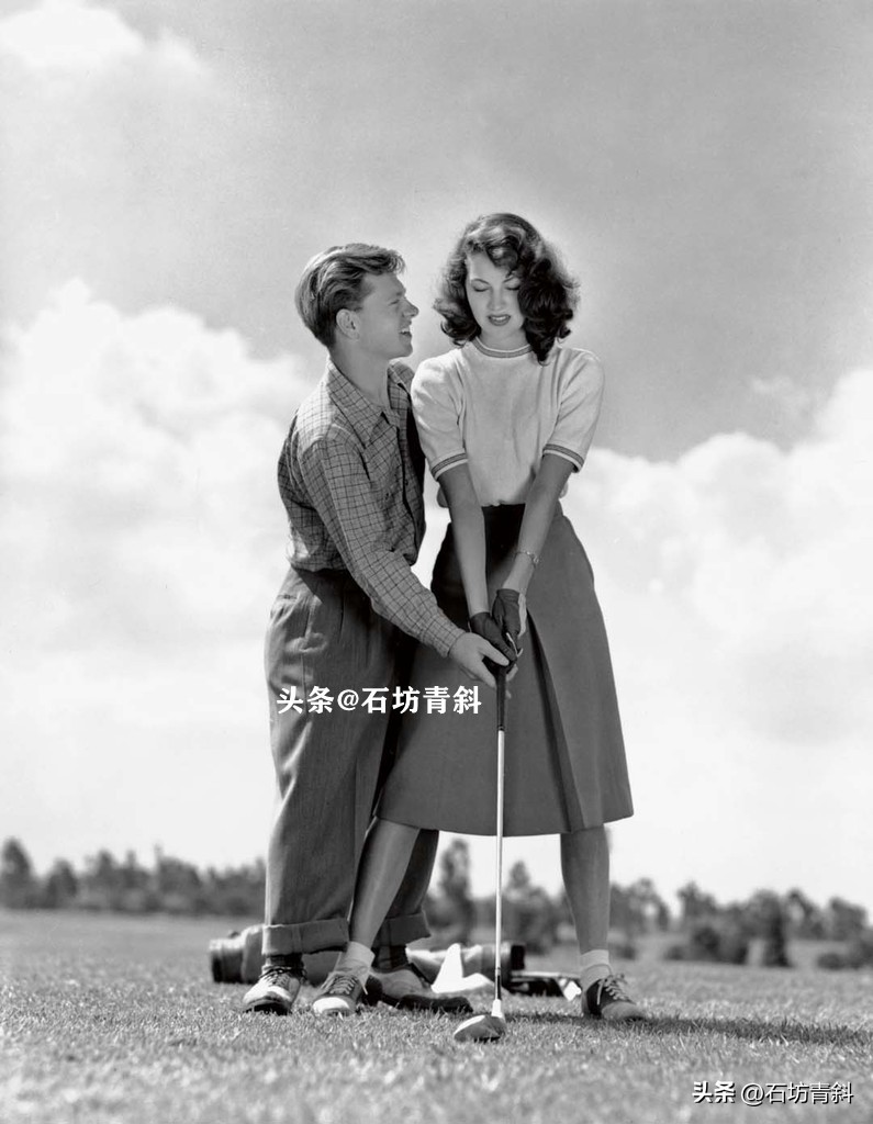 艾娃·嘉德纳和首任丈夫米基·鲁尼一起打高尔夫球