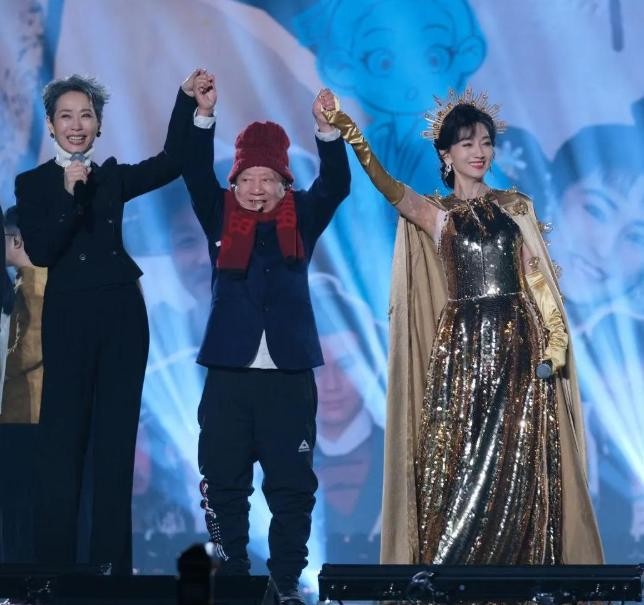 岁月在三人身上留下了痕迹,却未能夺走他们的风采。赵雅芝,当年的“白娘子”,如今已经71岁,但她依旧是那般优雅从容。她头戴镶满水钻的皇冠,身披金色披风,宛若一位尊贵的女王,站在聚光灯下时,依然光彩夺目。每一个眼神与笑容,都像是白素贞从画卷里走出来,温暖了全场的目光。