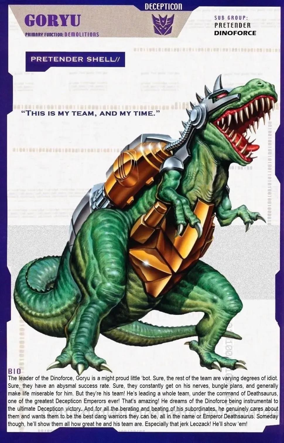 暴龙,霸天虎成员,隶属于声波的磁带军团,能够变形为磁带。无论是说话,破坏,还是攻击,他做每件事都毫无节制。