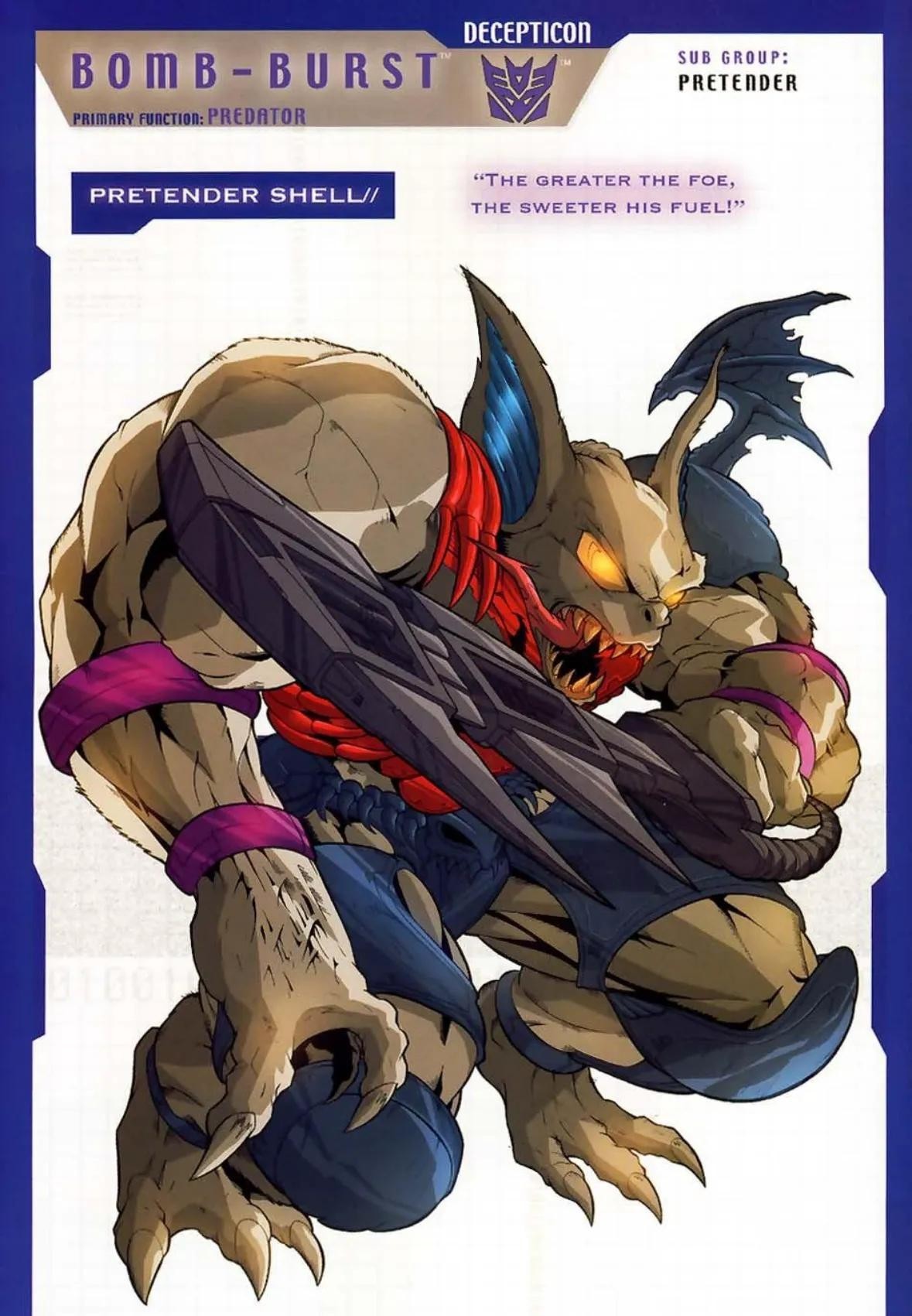 蝙蝠魔,霸天虎头领战士的成员。蝙蝠魔是一个神秘的角色,蝙蝠魔被那些不可见的事物深深吸引着。他宁愿花费大量时间试图与早已死去的霸天虎亡灵的电磁波相感应,而不愿与活着的人交谈。