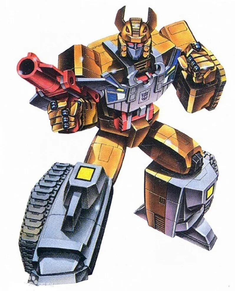 推土机,挖地虎成员,以破坏为乐,力量强大,身披重甲,战场上狂野激烈,是“适者生存”的坚定信徒,变形为推土机,构成大力神的左臂。