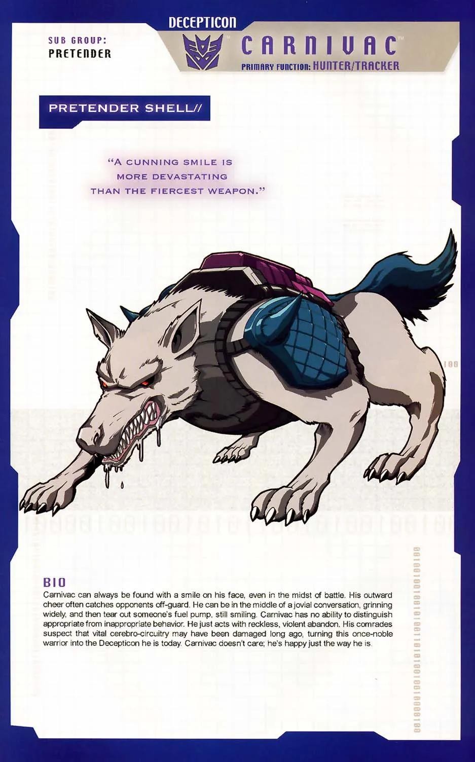 霸天虎头领战士指挥官,可以变形成机械狼。撒克巨人的冷酷亲信,战场上无情的亡命之徒,自尊心极强,渴望证明自己的实力。