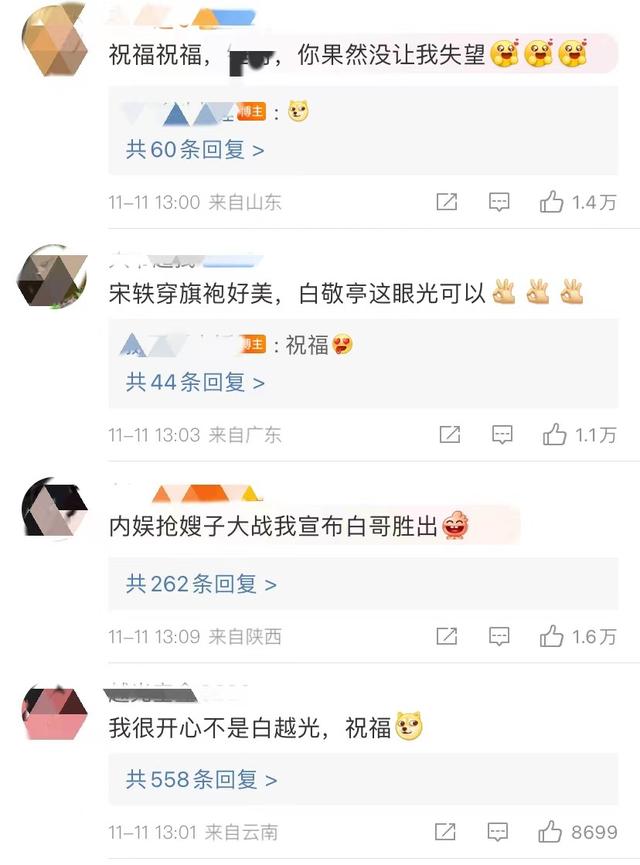 网友知道白敬亭的新女朋友是宋轶之后,十分满意,纷纷送上祝福,有网友表示:“内娱抢嫂子大战我宣布白哥胜出”。
