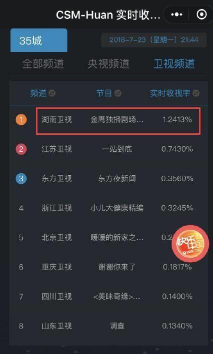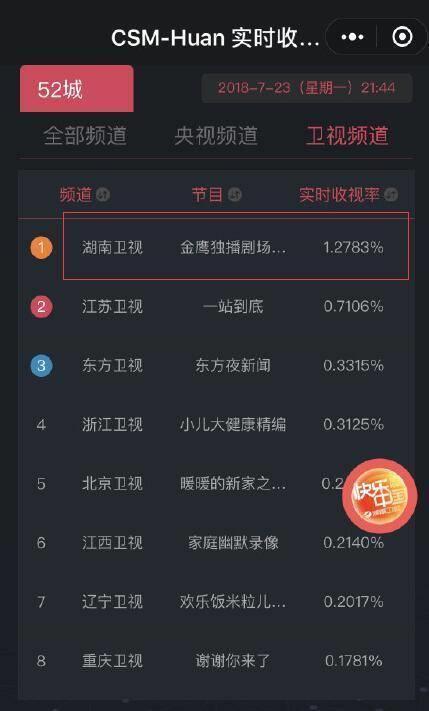csm-huan52城、35城实时收视率峰值1.2+,全国卫视第一!