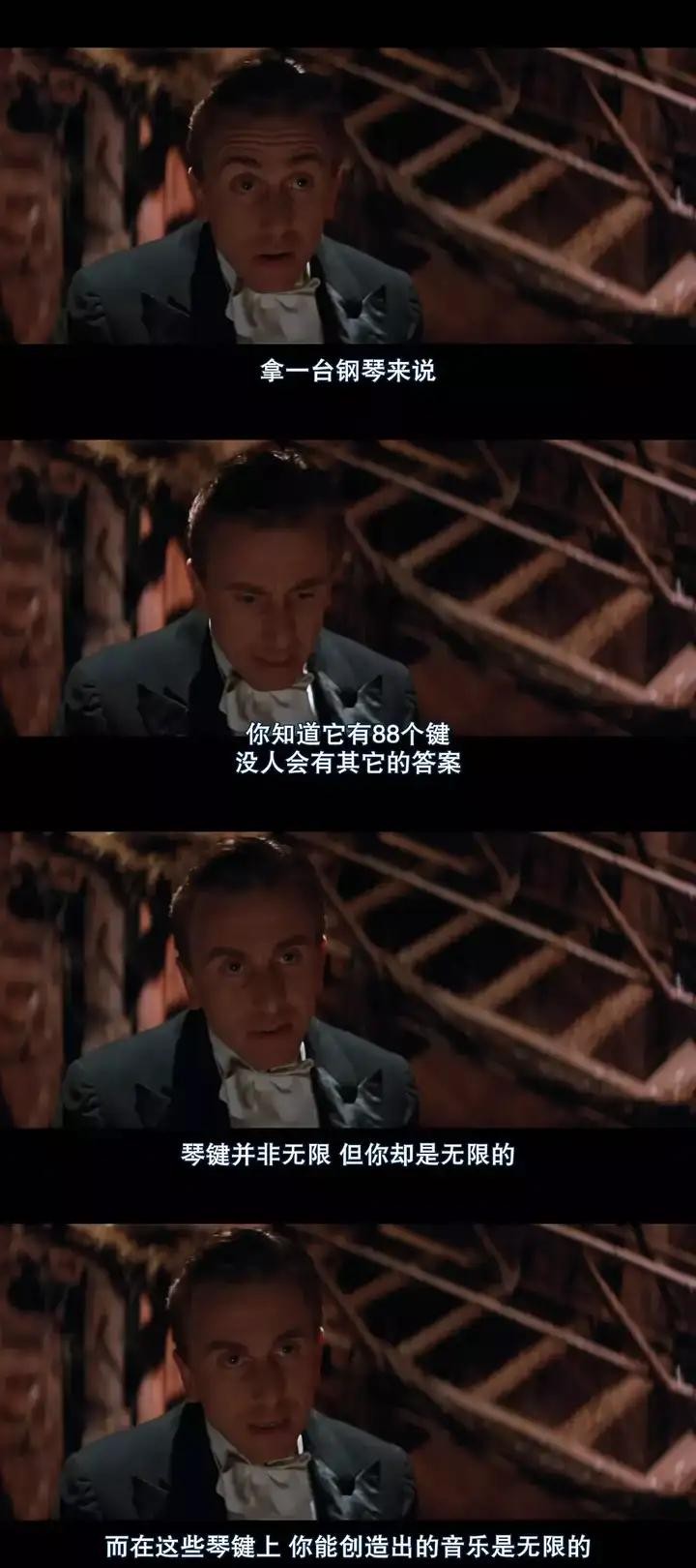 拿一部钢琴来说,从琴键开始,又结束。你知道钢琴只有88个键,随便什么琴都没差。它们不是无限的。你才是无限的,在琴键上制作出的音乐是无限的。我喜欢这样,我活得惯。