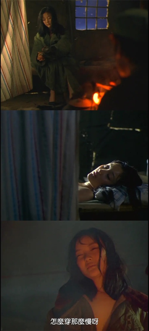 第一个男人,场部里的小白脸,用一个苹果哄骗秀秀,说可以帮他回城,结果得到满足后,消失了。第二个男人,听说了秀秀的事后,就骑着摩托来找她,骗她说可以帮她,结果依然不了了之。第三个男人,做完事后,秀秀怕再被骗拿着皮带不让男人走,男人只说“别闹了,快给我,回去不好交代。”第四个男人,深夜开车过来,拎起睡着的秀秀,二话不说就开始了。