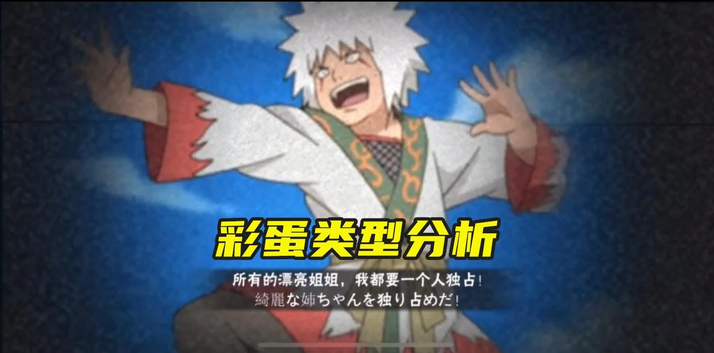 首先,我们从最常规的奥义彩蛋图说起,这个是最早兴起的奥义彩蛋效果,主要就是在动漫里有羁绊关系或者是有过对战场景的两个忍者,只要是用奥义终结对方就会触发对应的彩蛋。而这类彩蛋图在后来衍生出来一些比较特殊的效果,就比如少年自来也用奥义击败所有女性忍者就会触发一个特殊的彩蛋,这个效果也非常还原动漫里少年自来也的性格,只是因为在手游中的设定比较统一,在击败千代婆婆的时候同样是会有一样的彩蛋,所以,不少玩家也经常以此调侃少年自来也。