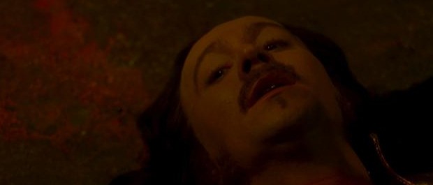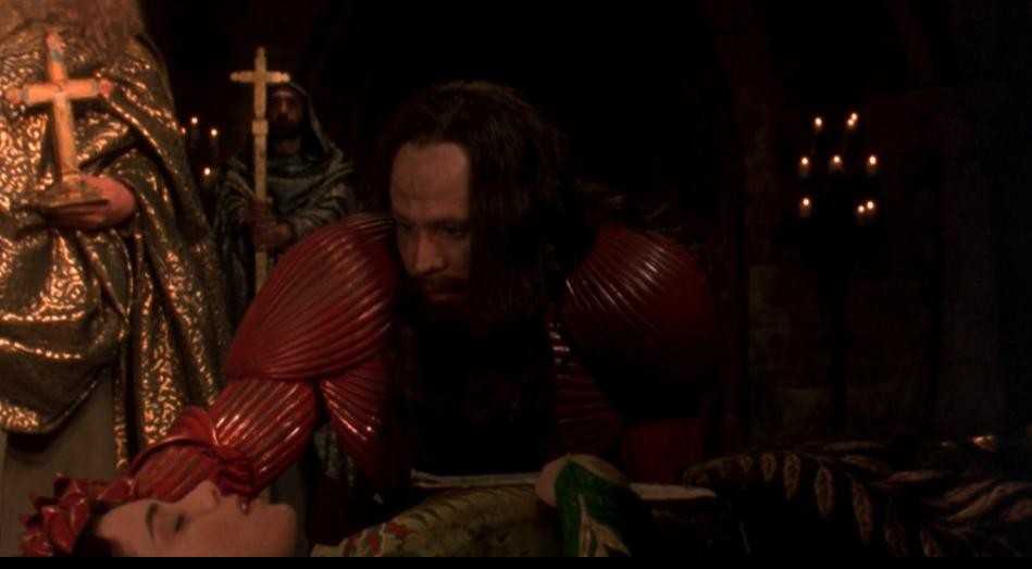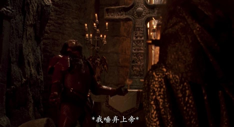 目睹爱人的离去,德古拉悲痛万分。而此时教会却说根据基督教教义,投河自尽的王妃的灵魂无法升入天堂;教会的说辞激怒了德古拉;自己忠心耿耿的为上帝和教会效力,却得到如此下场,于是他迁怒与教会和上帝,大闹教堂,将利剑刺入基督神像,并发誓饮血为生,忠于魔鬼,用尽邪恶的力量复仇。仇恨愤怒让德古拉投身魔鬼,变成了一名吸血鬼。