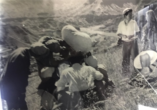 剧组洞中拍摄喜儿与大春久别重逢的镜头,是在天桂山东峰山青龙观上方断崖间的三眼洞(拍摄完电影《白毛女》后称为白毛仙姑洞),洞深20余米,有东、西、南三个洞口,皆临绝壁,险象环生,堪称险洞。洞口被野树掩着,择势又险,不那么易找,上去更难。剧组同志们扛着笨重的机器,踏着阶径,好一阵子才到。大家稍做休息便开始拍摄,经过演员和各部门的共同努力下,拍摄出在寒冬暑夏,狼嚎虎啸,荒山野洞里的喜儿,是怀着“盼东方出红日”的念头,才留着性命,咬牙活下来的。真是:“苦撑苦熬三年整,等到了太阳底下把冤伸”感人场面。