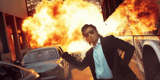 那电影里除了打斗之外,也必须加点飞车追逐戏、枪战戏,再弄点实景拍摄的爆炸镜头,使高潮部分能够"燃"起来。