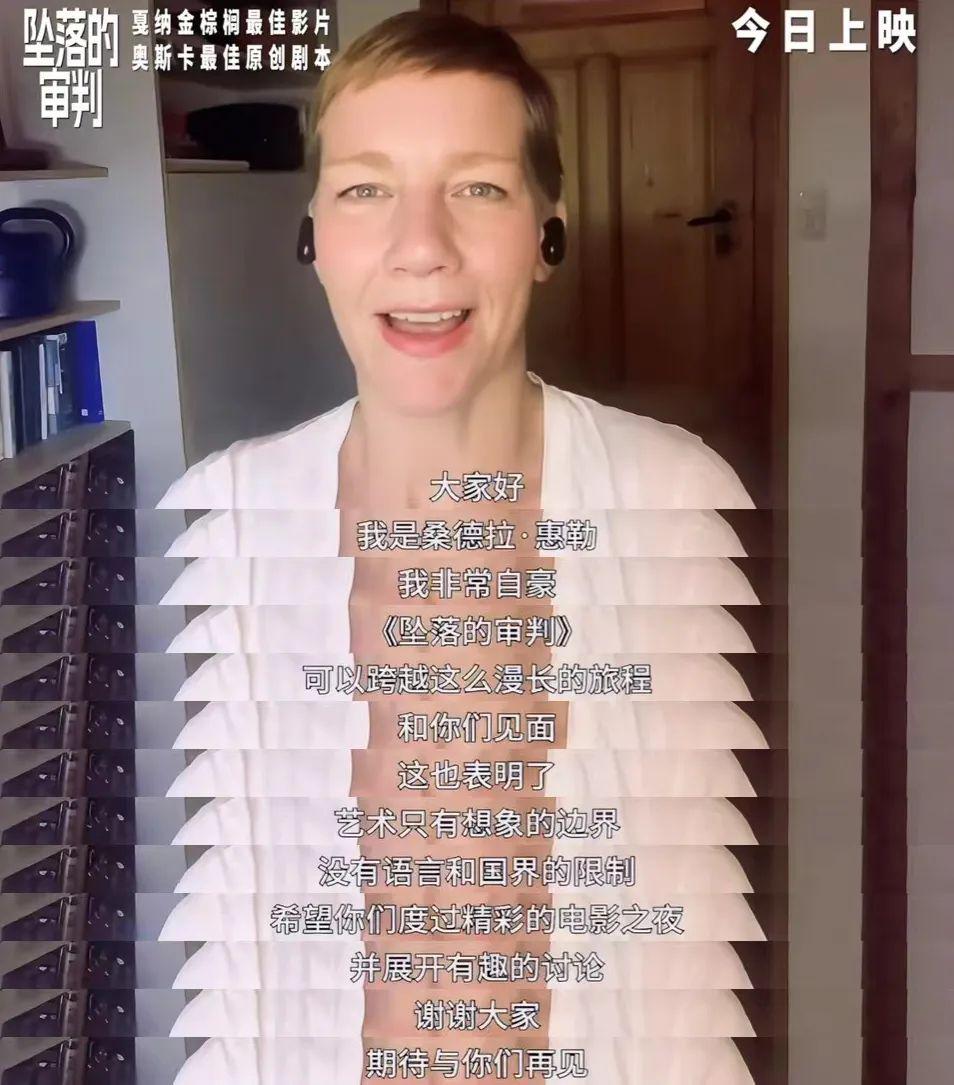 前几日,口碑神作《坠落的审判》(下文简称《坠审》)正式在国内上映,电影女主角桑德拉 · 惠勒为此特意录制了一段宣传视频。