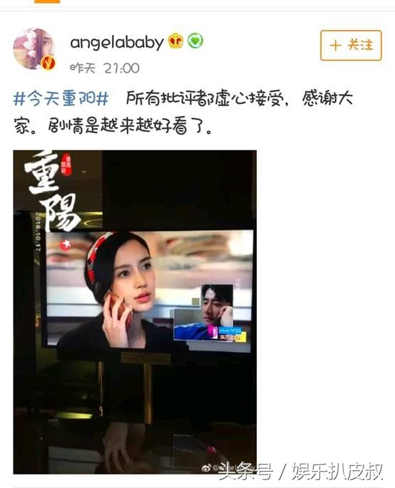 面对网友的吐槽,杨颖就自己的演技问题首次做出回应,所有的批评都虚心的接受,感谢大家。还不忘赞剧情越来越好看,希望大家再一次的支持这部剧。