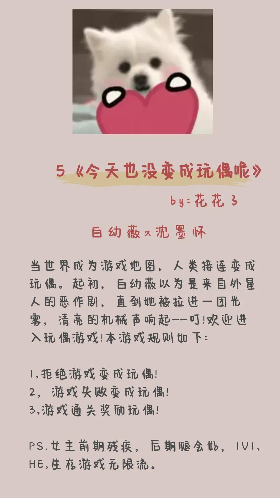 讲的是末世所有人都会变成玩偶,只有参加游戏,通关副本获得奖励,这本书里面的很多副本我都很喜欢,大多都是恐怖童话风,涉猎很广,作者把“末世”中的人性刻画的很好,各种副本都有其想表达出的意义。