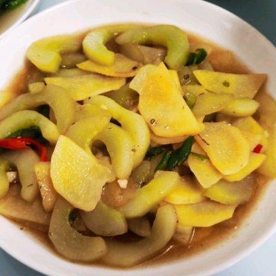 5、稍加一点水,老黄瓜要焖一会,软,入味。