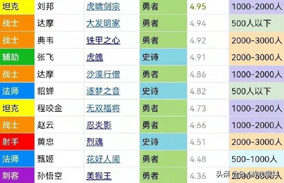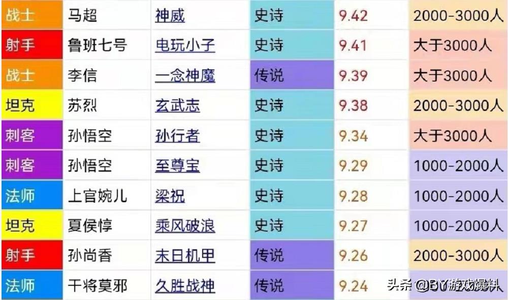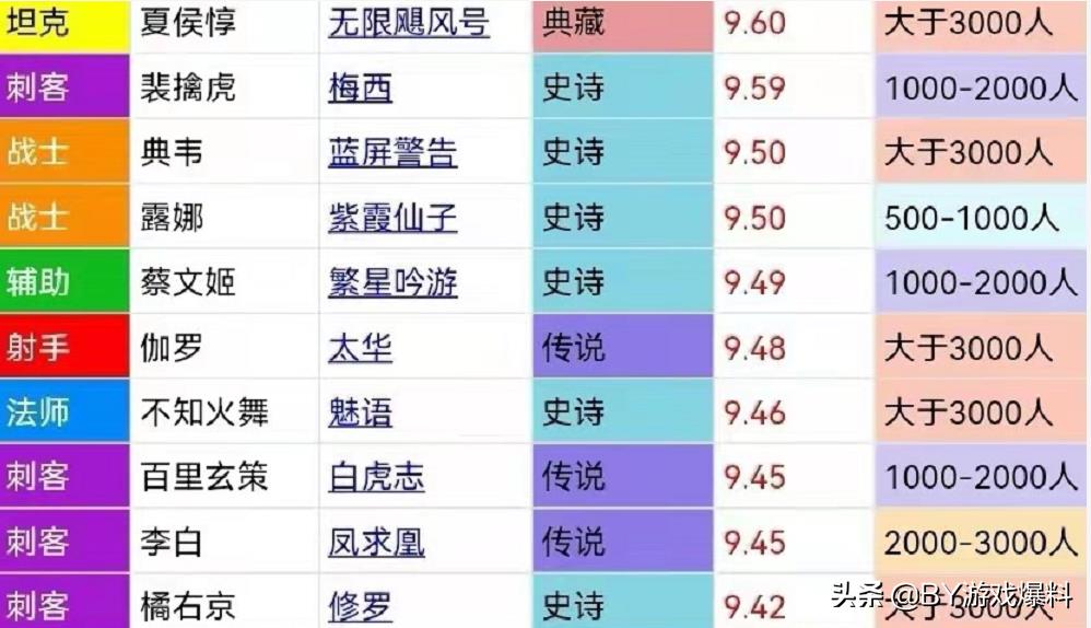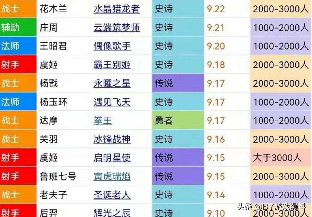王者荣耀:皮肤综合排行,高于9分皮肤有40款,低于5分皮肤有22款