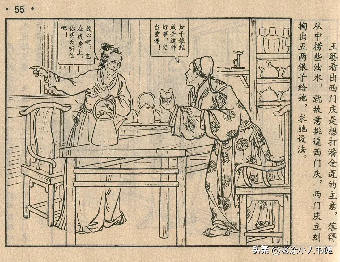 1955年《狮子楼》连环画,潘金莲像个良家妇女,西门庆是花花公子