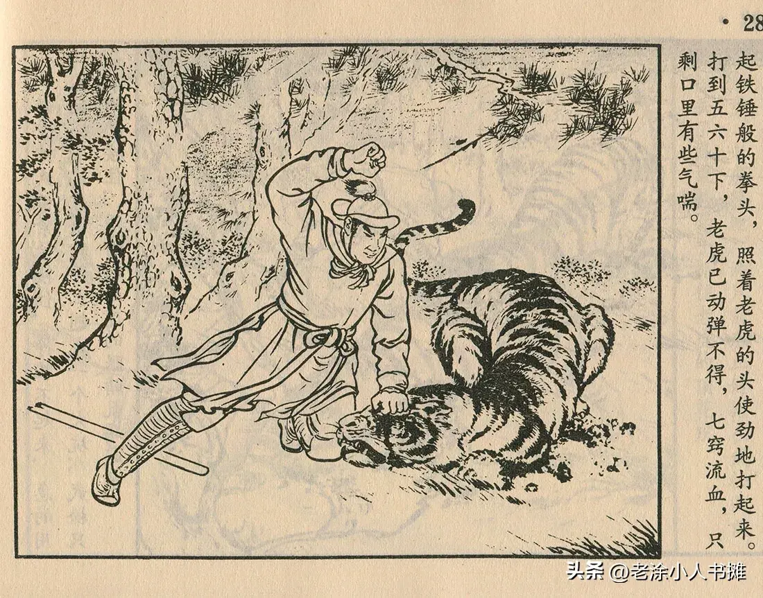 武松抡拳打死了老虎,这一段打虎的情节,描绘得很精彩。
