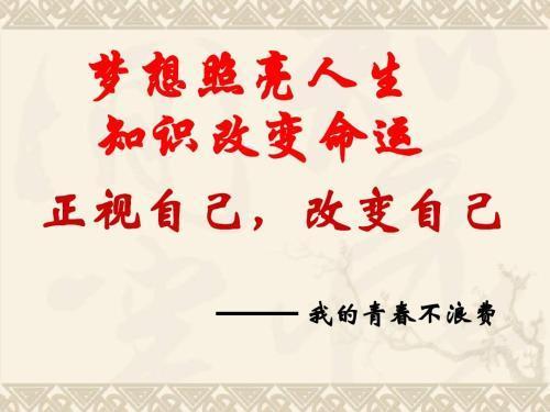 在教室里的一条条横幅引人注目,它激励着学生们不断向前。