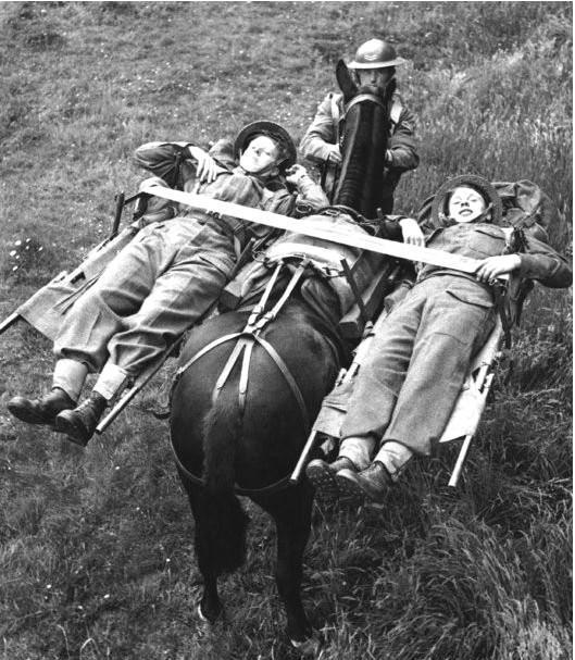 一,1944年,英国军人发明的双人驮马担架。