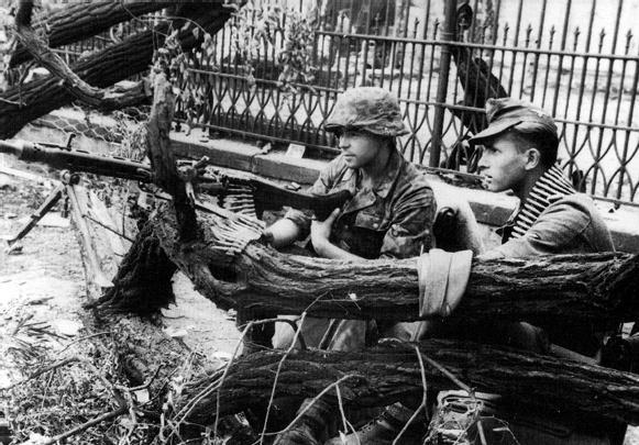 六,1944年,华沙起义中,一个架设在花园里的德军机枪组。