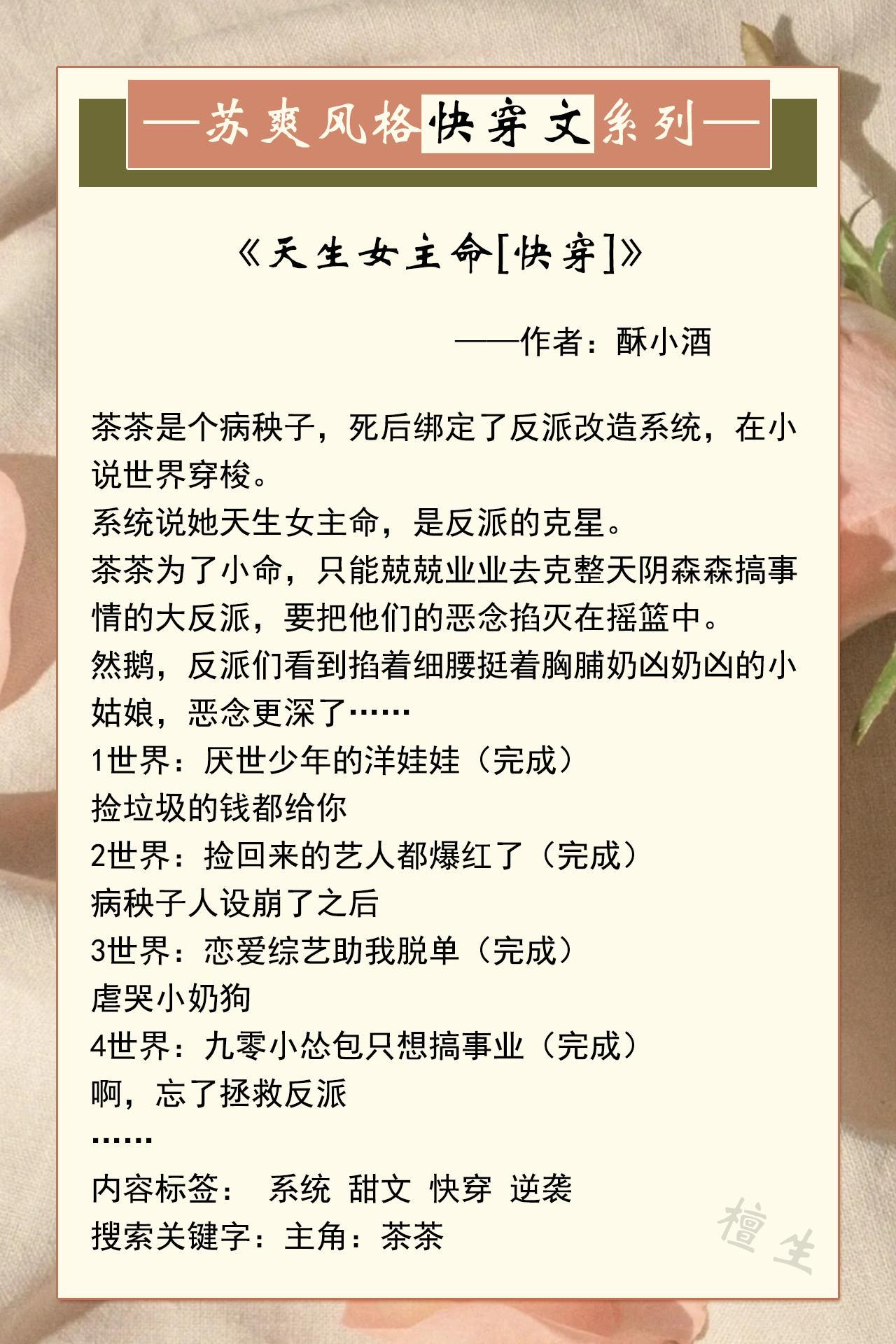 简评:女主茶茶死后被一个“反派改造系统”绑定,穿越到各个世界里根据系统传达的剧情,改造反派的三观故事。非女强型快穿文,文风很苏,走甜系救赎路线,反派的恶念值随机刷新,因女主的态度变幻莫测,所以女主战战兢兢刷任务。这里女主的性格好评,软萌善良,像暖阳又像解语花,一点点地治愈反派阴郁的内心,改变了他黑化玉石俱焚的命运轨迹,也扭转了自身红颜薄命的结局。最终攒够生命值重塑身体,女主获得回到现实世界的机会。