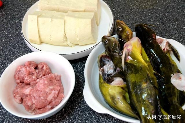 嘎鱼炖豆腐,多加一点猪肉馅,又香又嫩,好吃极了