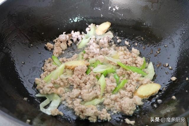 步骤4:肉馅很快炒散,颜色会变白,肉馅是肥瘦相间的,出来一些油脂,也会增加这道菜的香味;