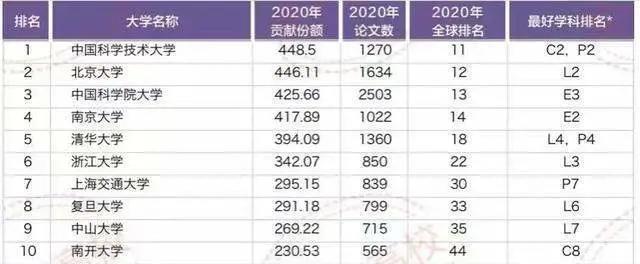 在最新发布的2021年全国高校排行榜当中,中科大排名并没有超过清北,排名为第7名,但是在科研实力方面却占据领先地位,2020年论文数量为1270篇,虽然并没有北京大学和清华大学的论文数量多,但是在贡献的份额方面却远超清北中科大最好学科排名为C2、P2。