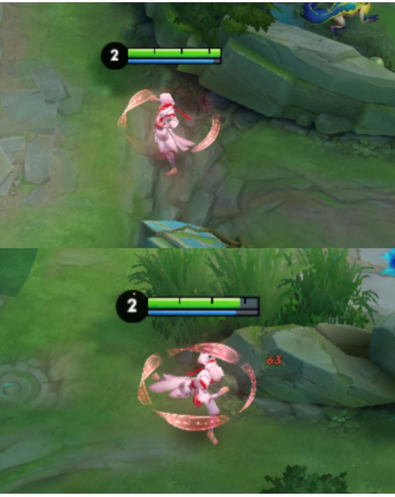 A:上图是诸葛亮在两层被动叠加时的周围状态以及四层被动时的状态,两层时周围有两圈稍显暗淡两圈明显常亮,而四层时周围圈圈均常亮(同理,一层被动圈圈触发时则会有三个暗淡的圈圈环绕)。两层时需要一个一技能的贴脸命中或者需要二技能穿过敌方单位配合大招才能快速触发五颗法球环绕效果,而四层时则任何一个技能都能快速触发被动(前提是命中敌方单位)。