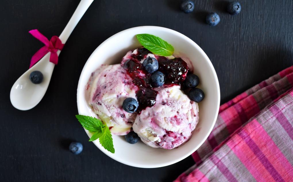 把清洗干净的蓝莓放在盆中,取冰激凌一盒, 让其在自然状态下化成糊状,倒入盆中与蓝莓充分混合后,即可食用。蓝莓冰激淋甜酸适口,清爽宜人,解暑、美容