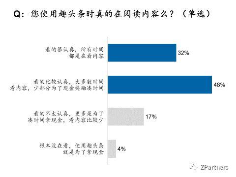 虽然趣头条的整体留存率或许不高,但ZP调研发现,经常使用趣头条用户大都在认真读内容,而不是玩积分体系拿现金。