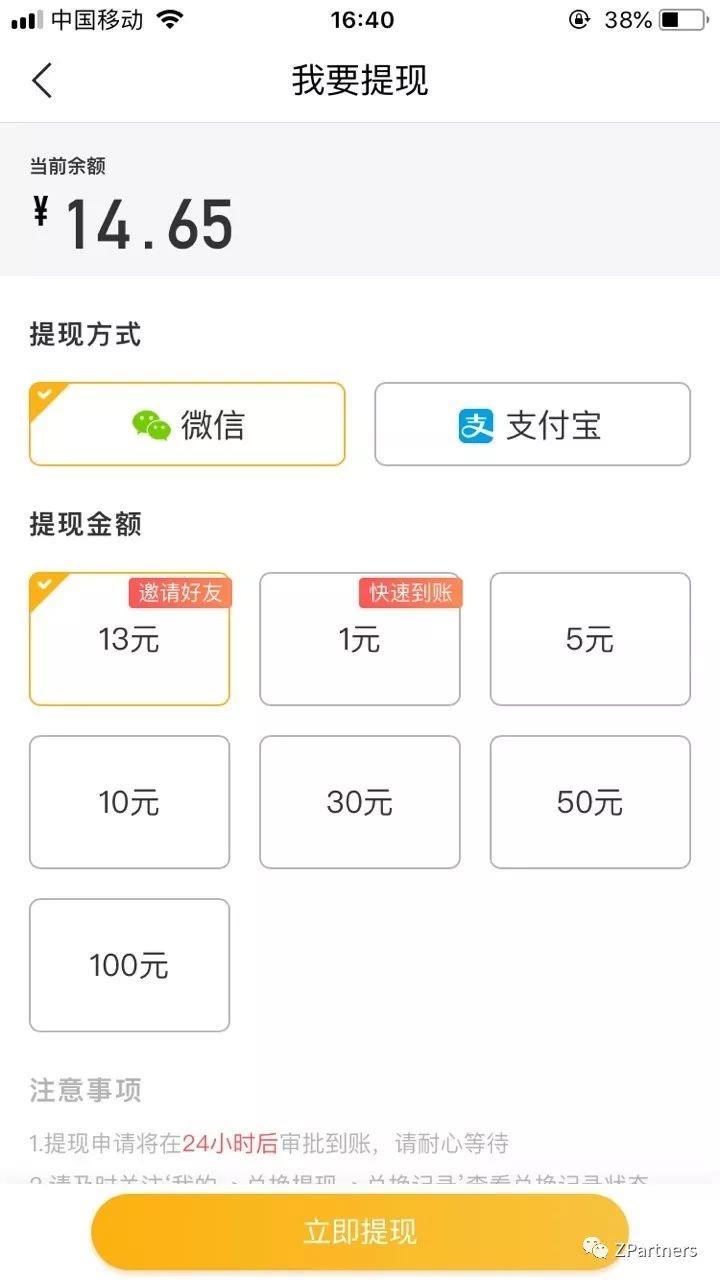 趣头条提现需要绑定微信或支付宝(头条极速版只能提现支付宝——来吧,互相伤害吧),提现规则为拉新奖励可一次性提出,而来自阅读的奖励则通常需要攒够5元才能提出。5元钱意味着一个正常用户需要认真看半个月趣头条。