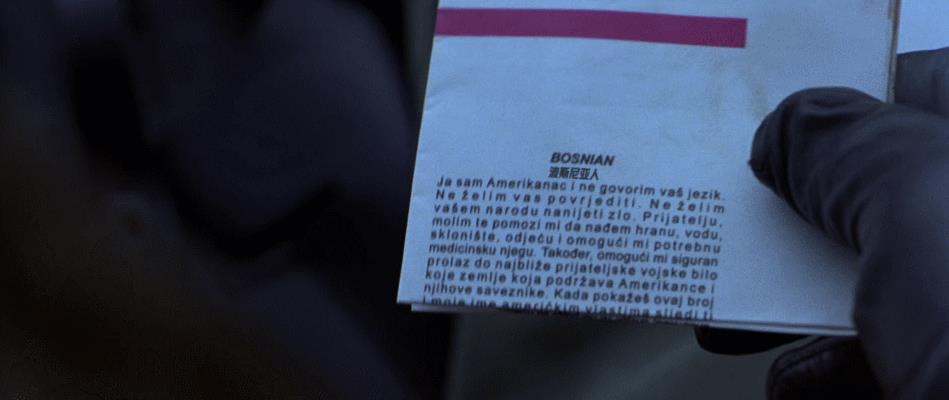 有趣的是,在这部影片最初的剧本中,并没有这方面的内容。故事的第一稿着重描述了二个飞行员在敌人后方被打下来后的救助经历。另一剧作者扎克-佩恩有了个想法,把影片分成几个同时进行的故事情节,使它既讲述了许多如何制定的救援计划,同时又是一个生存传奇。在增加的部分里,佩恩更多地描述了汤姆-克兰西-伊什(Tom Clancy-ish)加入的区域之间不同办事程序的政治关联性。