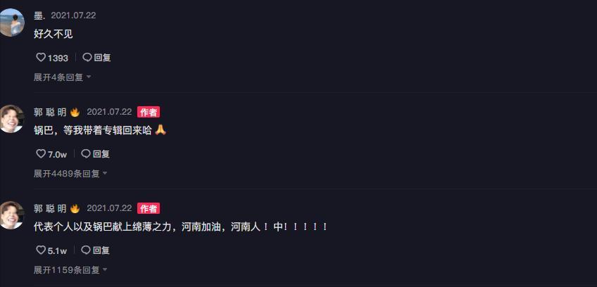 在评论区,网友们都在为河南加油,也为郭聪明加油,还为他的病出谋划策,而郭聪明也向大家许诺,会带着专辑重新回归。