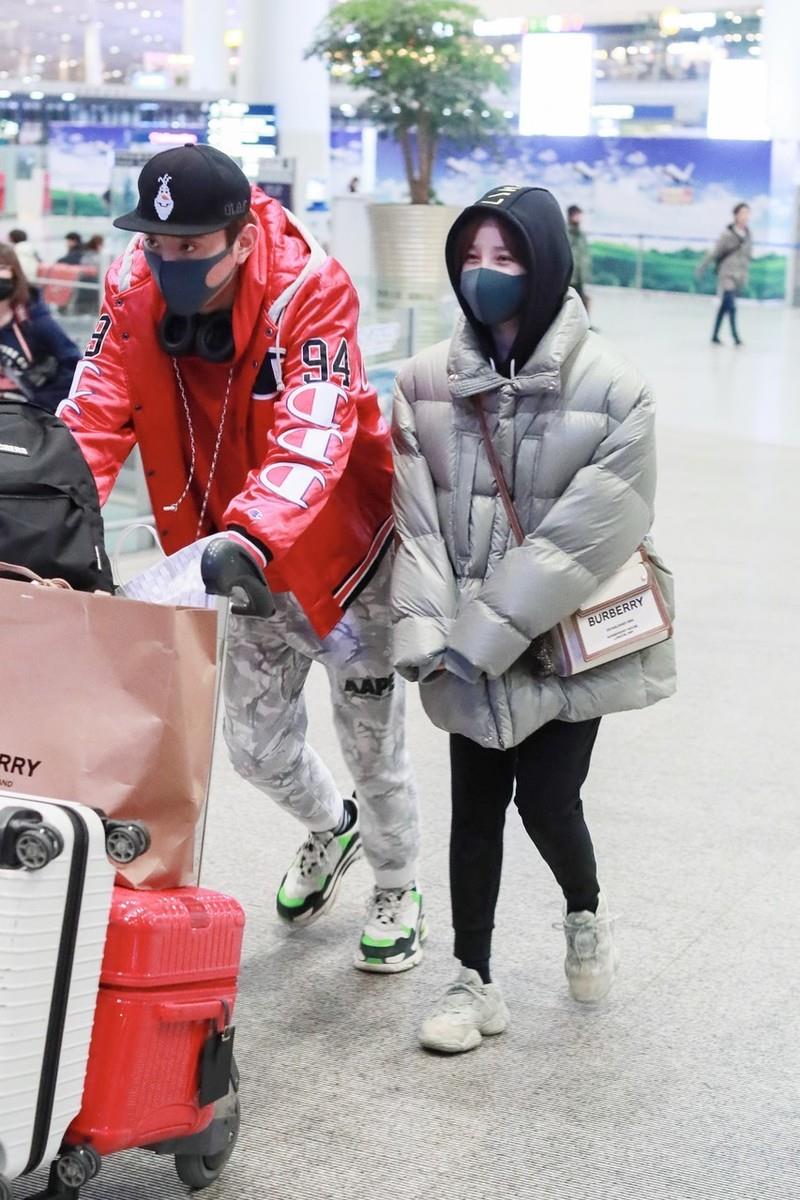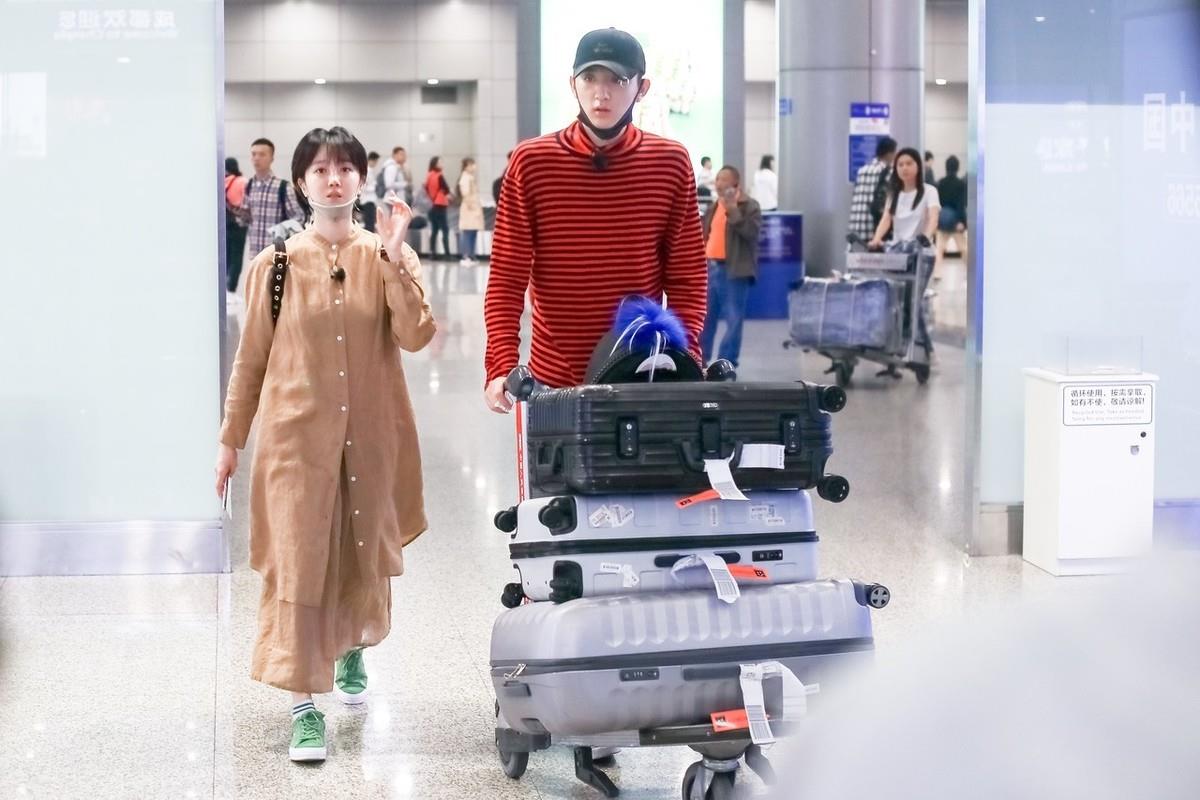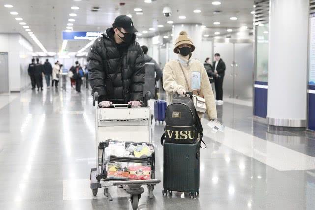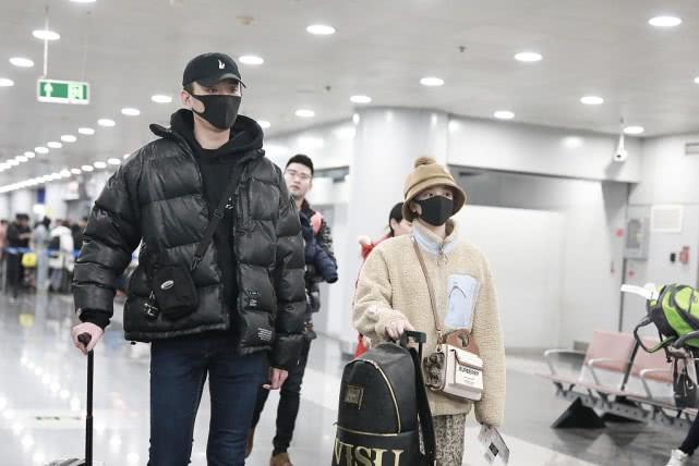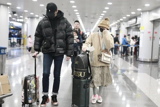 陈小纭于小彤走机场,黑白配穿搭甜蜜秀恩爱,身高差23cm太萌了