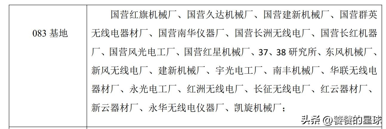“083 基地”为国家一类大型军工单位,主要生产卫星通信、雷达、移动通信、卫星广播电视成套设备、电子器材、电子元件、数字用户程控交换机等产品。