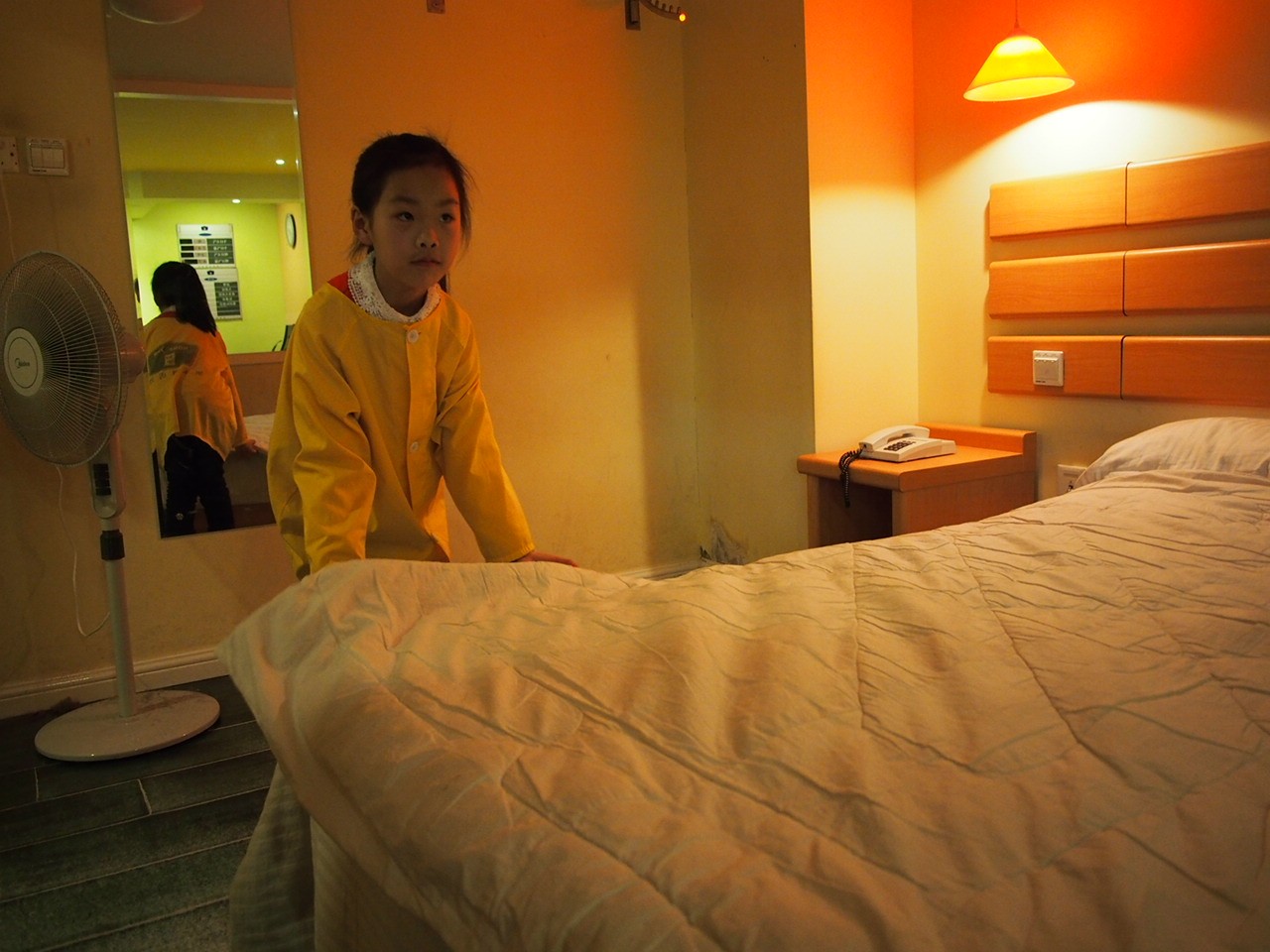 当提醒她看镜头,摆个pose拍张照片时,在整理房间的小姑娘义正言辞:“我在工作!”