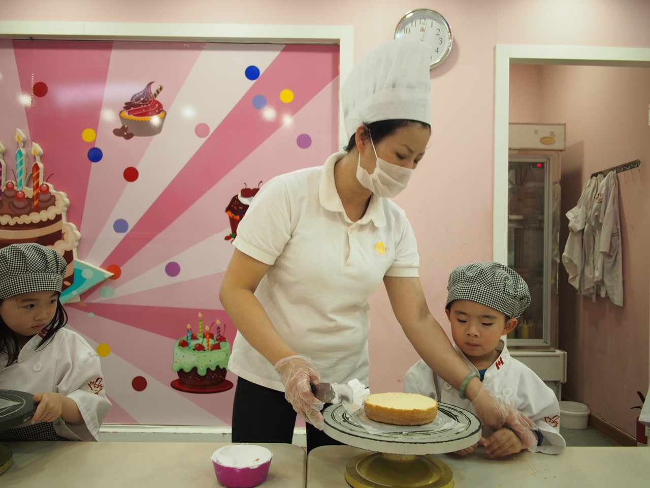 甜品总是小朋友的心头好,小娃学做蛋糕多认真。