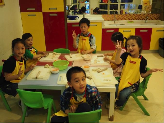 从甜品店出来,再试试包饺子,一些小朋友不会用擀面杖,只能用手按压饺子皮。