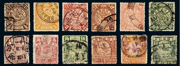 1897年发行的蟠龙票全套共12枚,面值从半分到5元。