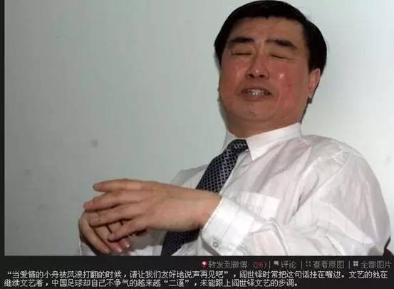 阎世铎号称中国足球史上最文艺的足协掌门人,其语录还包括:“杀无赦、斩立决。”“中国男足从此站起来了!”“我对假球黑哨的看法是:横看成岭侧成峰,远近高低各不同。”……