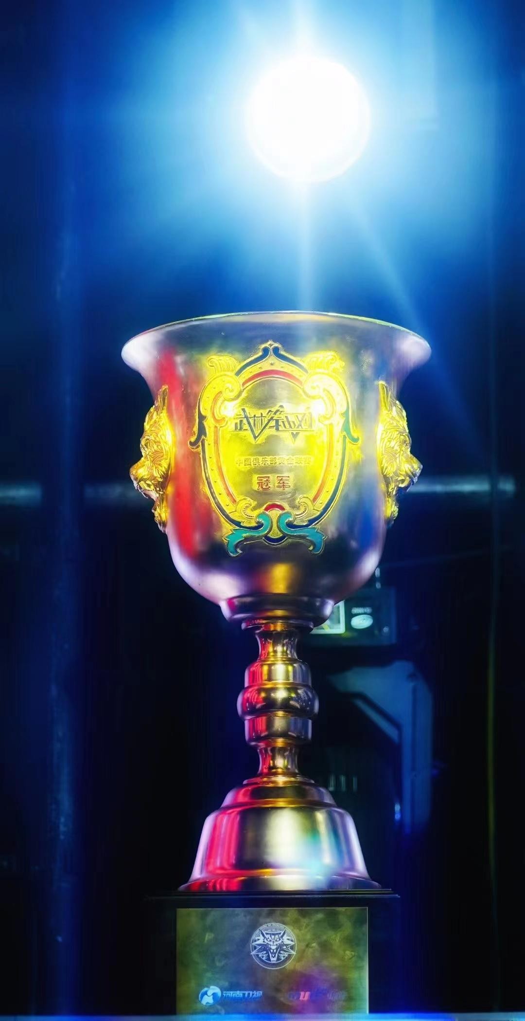 奖杯由北京华夏珍宝馆定制,特邀金氏宫廷景泰蓝传人金玉田、金鑫父子,采用景泰蓝工艺纯手工,融入传统文化和现代搏击等元素,弘扬威武敢战的“苍狼精神”,奖励黄金联赛总冠军。外形美观、匠心独运、价值不菲,全球独有。