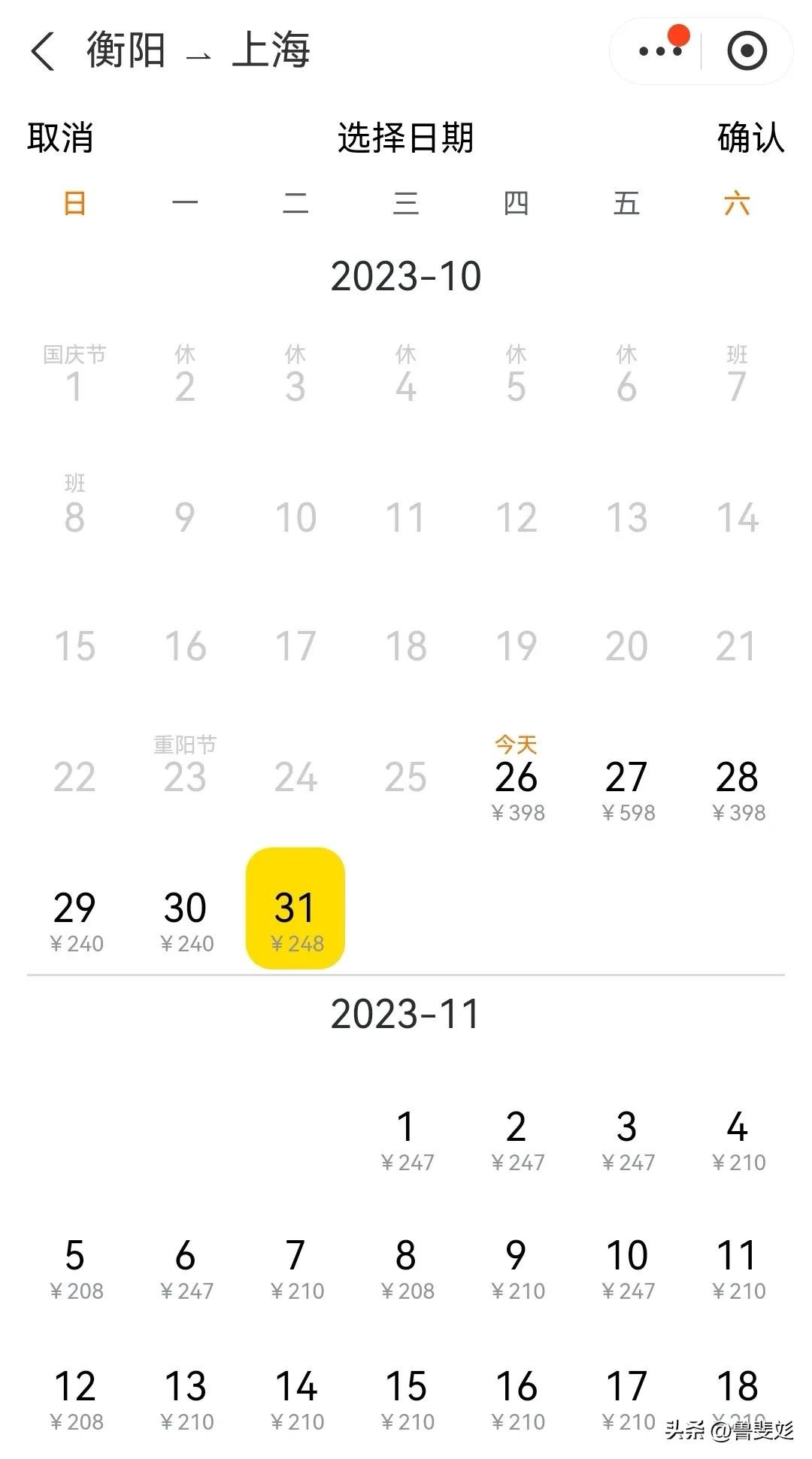 衡阳到上海每天2班,可达浦东机场和虹桥机场,最低票价低至210元。