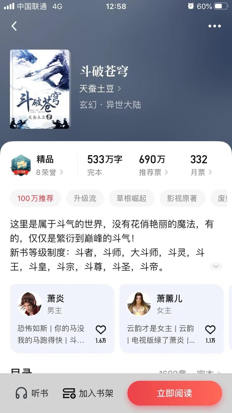 这本书,其实真的有点小白,故事主线也很清晰明了。退婚流、老爷爷流更是影响了无数以后的作者。当年,恐怖如斯、莫欺少年穷等词汇频频登上全年热词。斗破几乎可以称之为现象级作品,也可以称之为网络爽文的教科书。