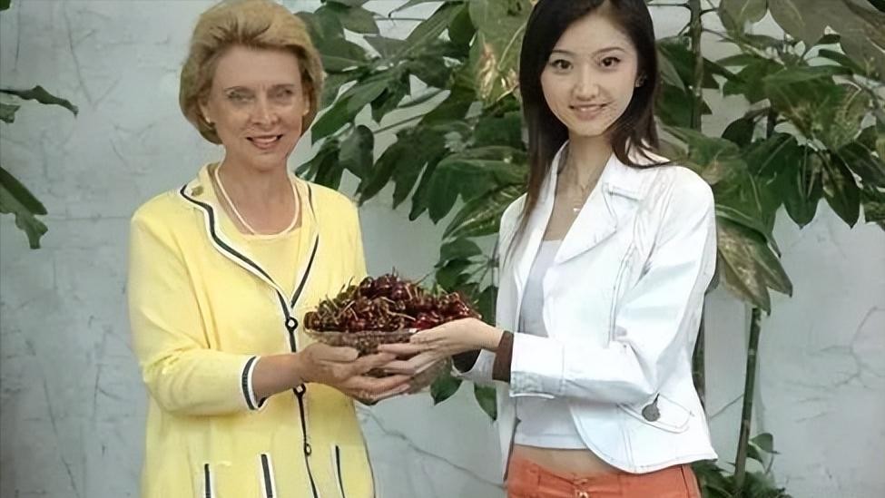 2007年,形象清纯开朗的景甜成为西安樱桃的代言人,还与华盛顿女州长合影。