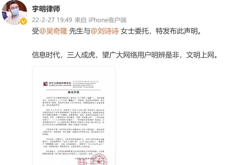 在娱乐圈中,被谣传婚变的明星夫妇不在少数。很多时候,明星们对于这些传闻选择了冷处理,只有当舆论的压力越来越大、传闻愈演愈烈时,才会站出来进行澄清。刘诗诗与吴奇隆也不例外,他们在传闻发展到一定程度时,果断地采取行动,维护自己的权益。