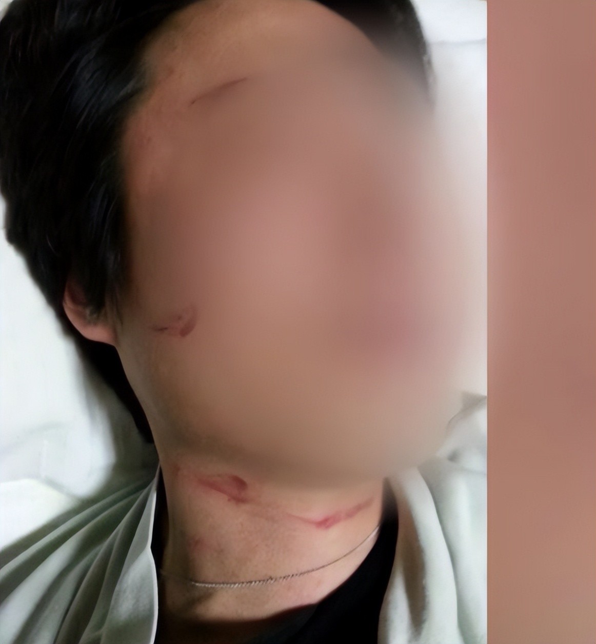 视频当中,赵显娥丈夫的脖子上有着非常明显的勒痕,脸也被划破了。