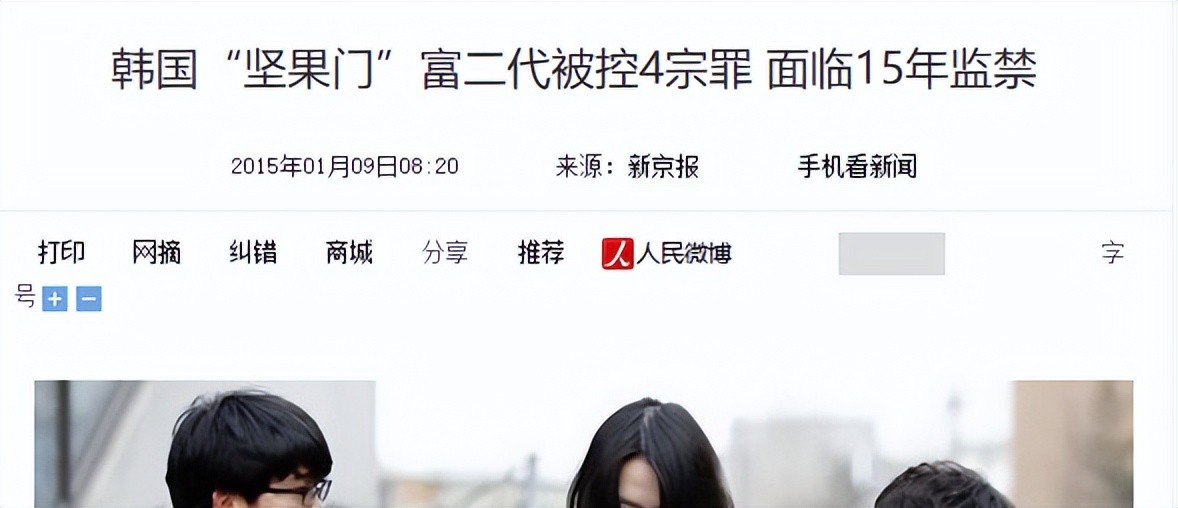根据新京报的报道,这个事情刊登于2015年1月9日发布的《韩国“坚果门”富二代被控4宗罪 面临15年监禁》