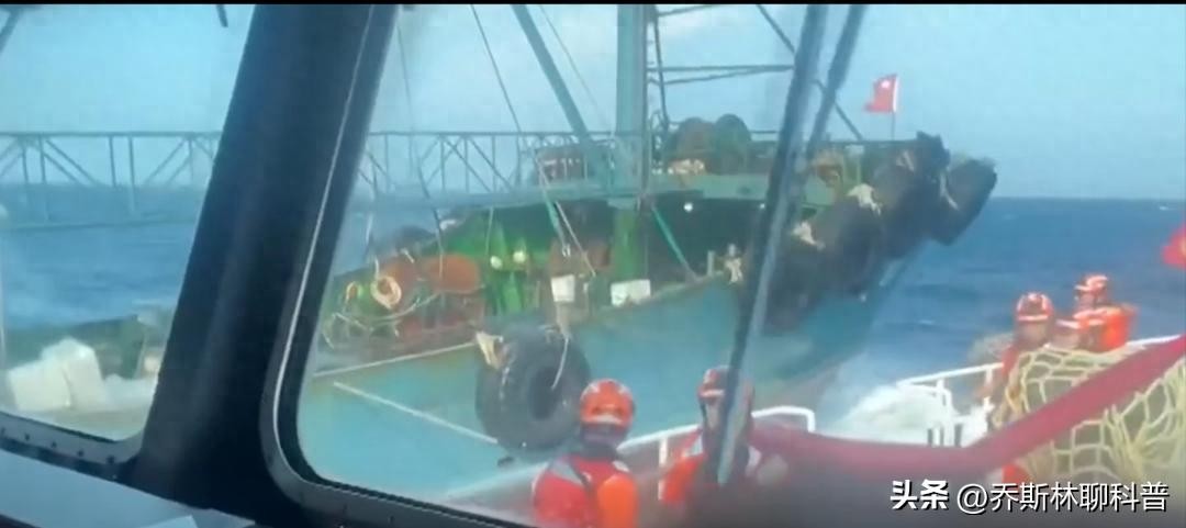 这艘大陆渔船看见台湾方面的“海巡船”之后,就准备离开这个海域,然而台湾方面的“海巡船”却一直在追赶着它,最后在追逐之中,追到了这艘渔船,冲撞之后登上了这条渔船。从台方发布的“海巡船”图来看,其舷窗破损。此事,想来也是对被扣留的渔民开出巨额罚款的前奏。