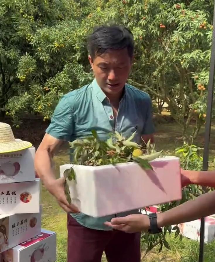 今年5月份,彭新智就去了茂名高州根子镇,顶着烈日,亲自去到果园挑选荔枝,为当地的果农做宣传。